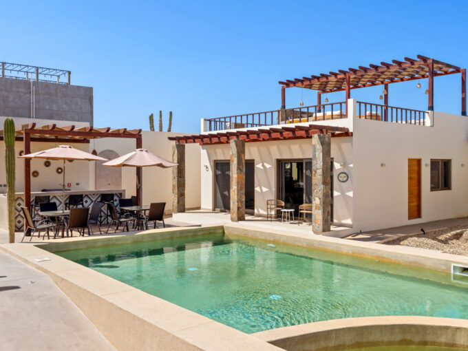 Inside, every detail has been thoughtfully curated for comfort and style. Wake up to views of the waves right from your king-size bed, and enjoy the expansive panorama of the ocean from nearly every corner of the unit. Step up to your private rooftop terrace for 360-degree views of the Pacific Ocean, Sierra de la Laguna mountains, and endless sky—ideal for morning coffee, sunset cocktails, or stargazing at night.